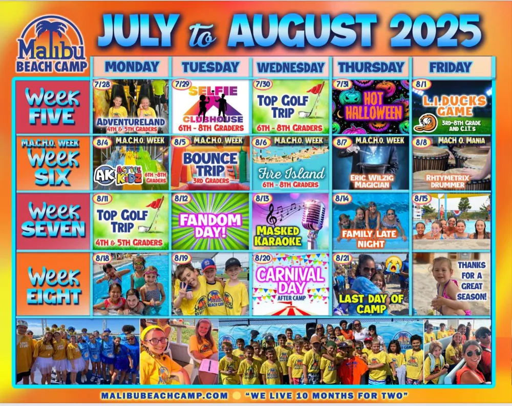 At Malibu Beach Camp, we offer safe and convenient door-to-door transportation throughout most of Nassau County. Our buses are driven by experienced, licensed professionals and supervised by trained bus counselors who ensure a smooth and enjoyable ride for every camper. Families receive clear communication about pick-up and drop-off times, and our team is always available to assist with any scheduling questions. With Malibu’s transportation service, getting to camp is easy, reliable, and worry-free. Please complete the Transportation Contract for each of your children taking the bus. You will need to complete this form for EACH child utilizing transportation for the Summer.